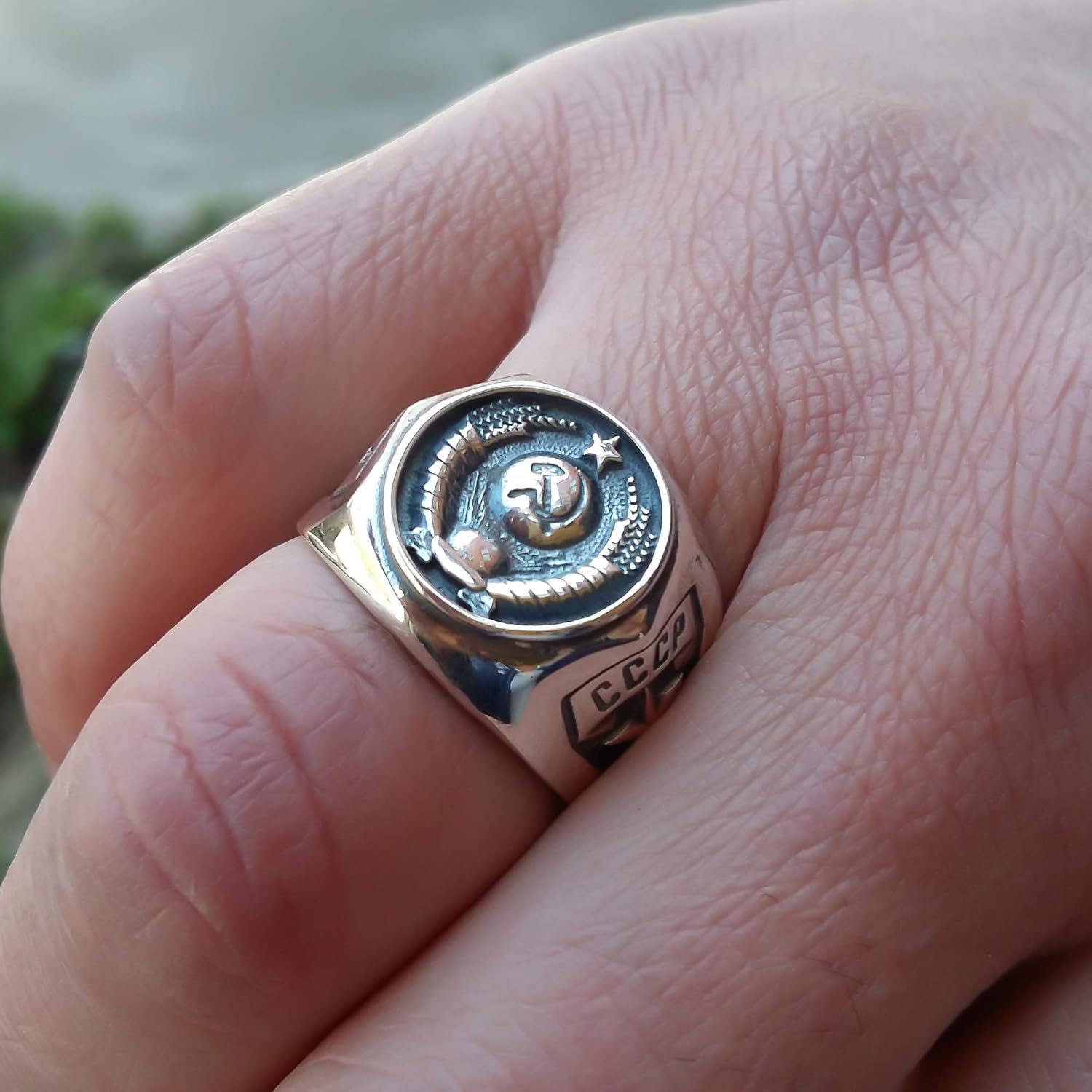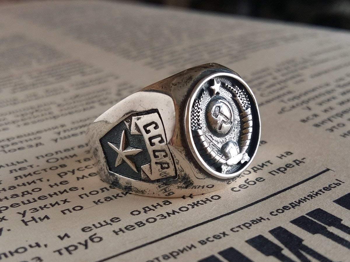Amazon Com 925 Sterling Silver Communist Soviet Union Emblem Signet Ring For Men Hammer And Sickle Ussr Symbolism Sssr Coat Of Arms Symbol Vintage Nostalgic Jewelry Biker Gifts Handmade Handmade